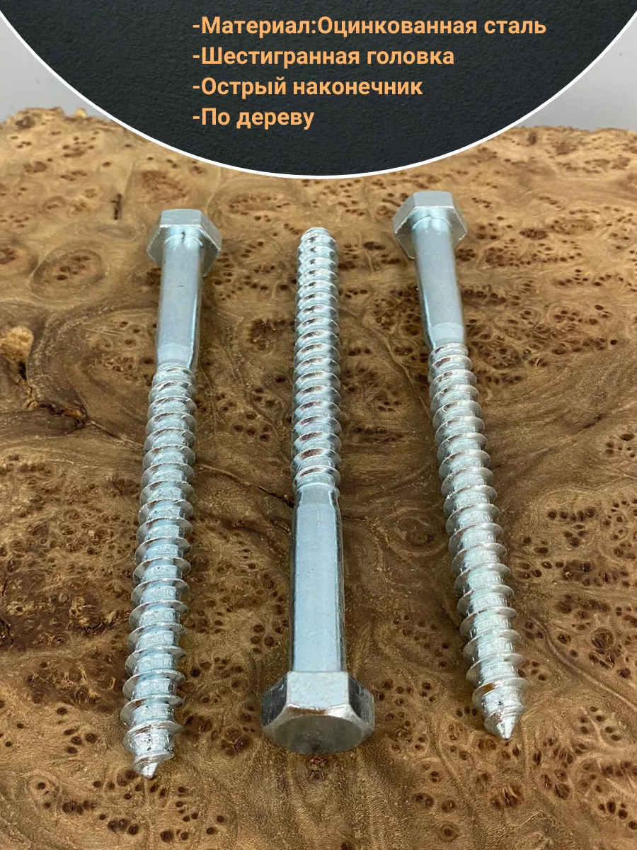 Крепёжное изделие в виде стержня с шестигранной или квадратной головкой под ключ и специальной наружной резьбой, образующей внутреннюю резьбу в отверстии соединяемого предмета. Саморез делается из оцинкованной стали. Такой крепеж обеспечивает надежный монтаж оборудования и его элементов. В состав изделия входит стержень, имеющий неполную резьбу, и шестигранная головка «под ключ». Область применения: Изготовление столярных изделий, деревянных конструкций и домов, установку санитарно-технических приборов, отопительных котлов напольного типа и радиаторов облегчит саморез типа «глухарь», соответствующий DIN 571. Чтобы смонтировать крепеж в строительную конструкцию из кирпича, природного камня или бетона, саморез нужно дополнительно укомплектовать разжимной втулкой из полимерного материала с соответствующими размерами. Изделие можно устанавливать в горизонтальных или вертикальных поверхностях.