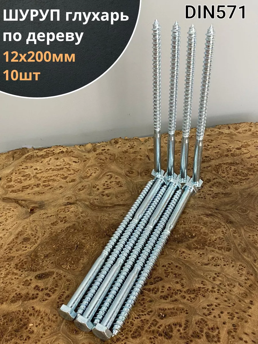 Шуруп глухарь по дереву 12х200, 10 шт.