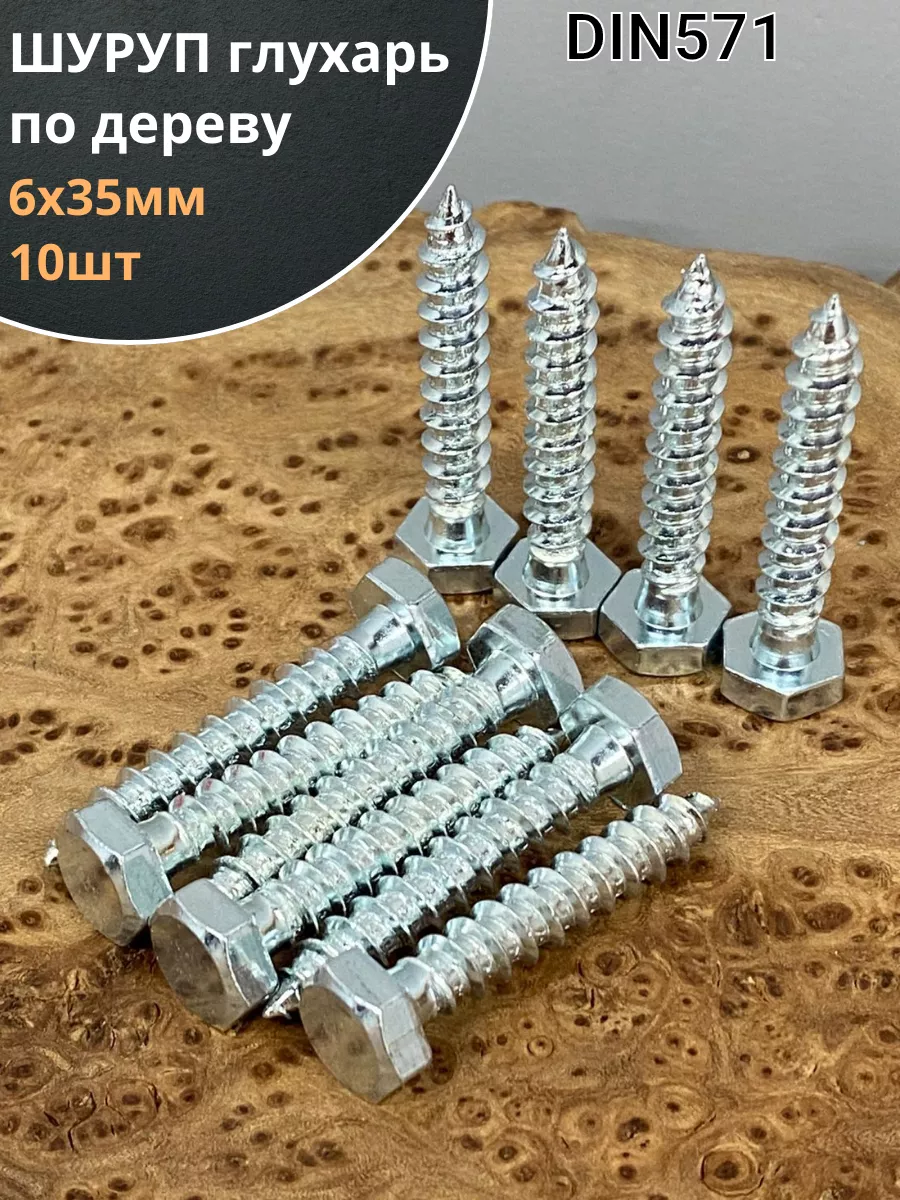 Шуруп глухарь по дереву 6х35, 10 шт.