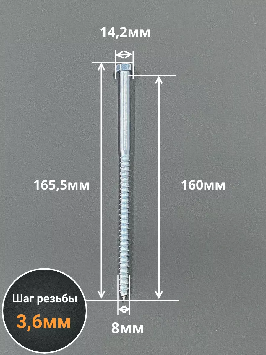 Шуруп глухарь по дереву 8х160 , 10 шт.