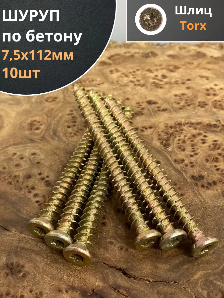 Саморез-шуруп "Бетон Нагель" с потайной головкой, с насечками и шлицем TORX. Шуруп широко используется в строительстве и при проведении ремонтно-отделочных работ. Часто применяются для крепления оконных рам и дверных коробок. Данный саморез изготавливается из стали и потом покрывается желтым цинком. По всей длине стержня расположена острая попеременная резьба. Шуруп имеет острый наконечник и потайную шляпку. Для работы с данной моделью шурупа необходима бита TORX. Материал основания: бетон, природный камень, кирпич.