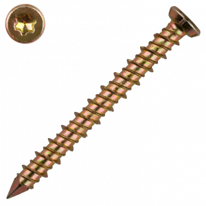 Шуруп — это металлический крепеж, представляющий собой стержень с головкой и острым наконечником. Универсальность проявляется в конструкции и области применения. Назначение шурупа — стягивать, скреплять между собой элементы: деревянных, древесностружечных и гипсокартонных плит, из тонкого листового металла. Саморез-шуруп "Бетон Нагель" с потайной головкой, с насечками и шлицем TORX. Шуруп широко используется в строительстве и при проведении ремонтно-отделочных работ. Часто применяются для крепления оконных рам и дверных коробок. Данный саморез изготавливается из стали и потом покрывается желтым цинком. По всей длине стержня расположена острая попеременная резьба. Шуруп имеет острый наконечник и потайную шляпку. Для работы с данной моделью шурупа необходима бита TORX. Материал основания: бетон, природный камень, кирпич.