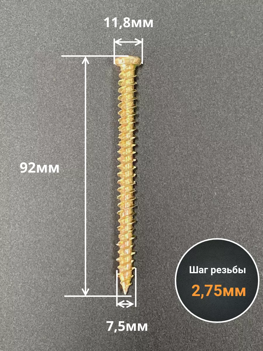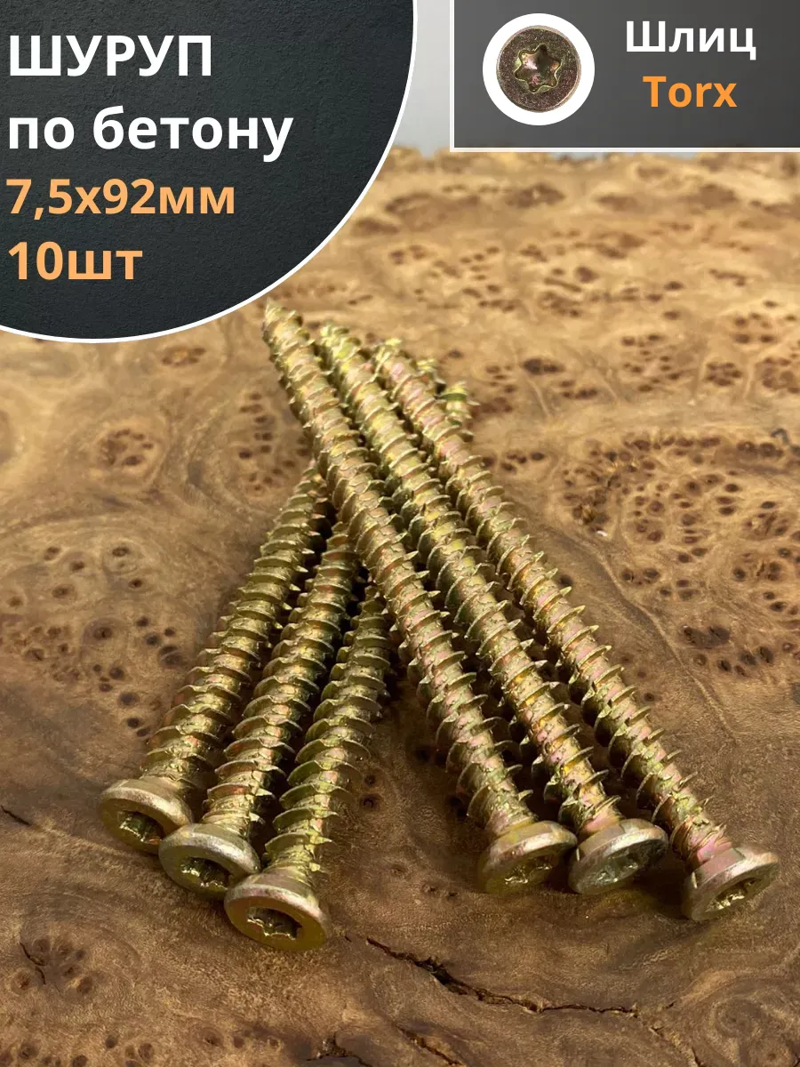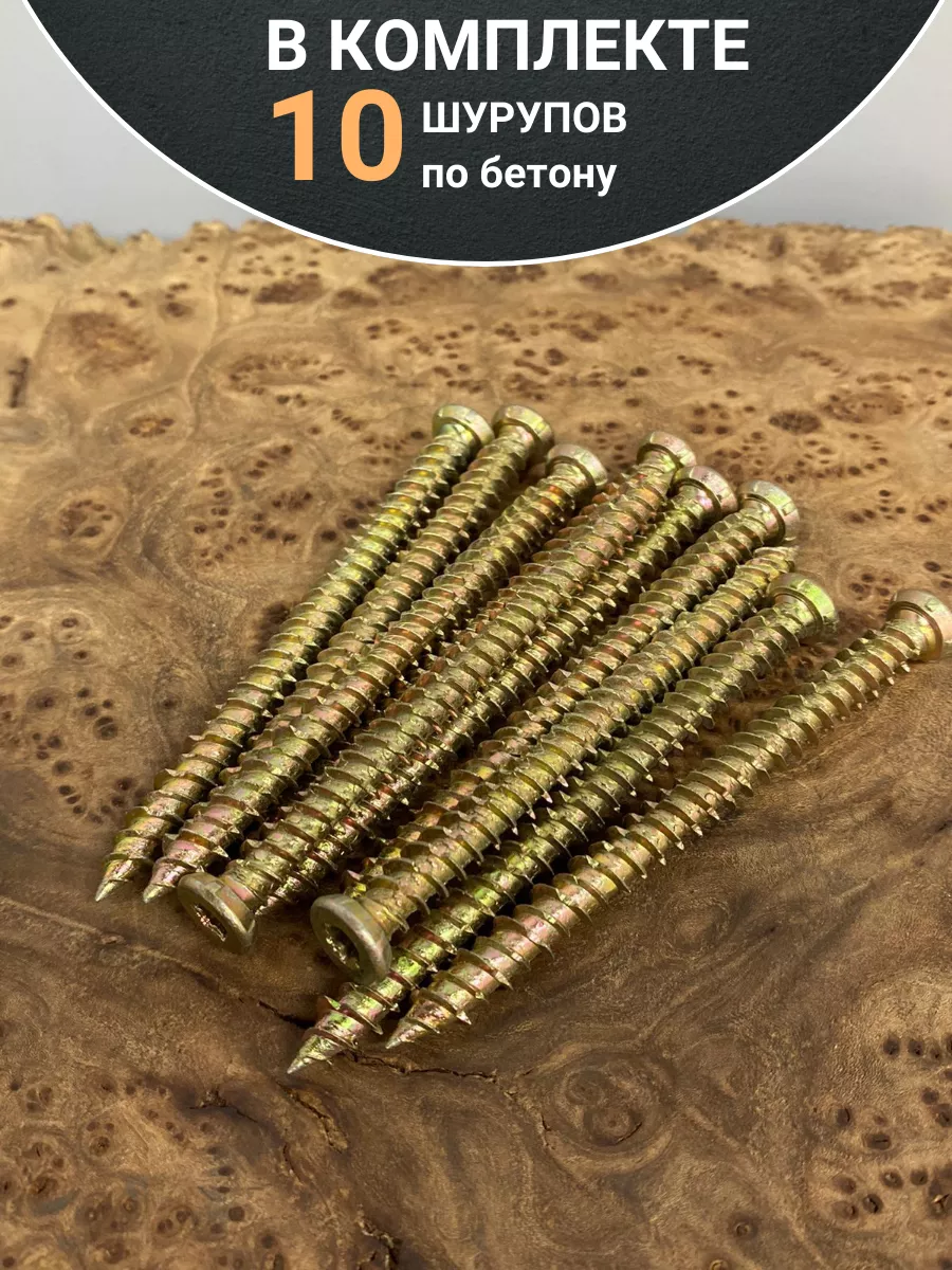 Шуруп — это металлический крепеж, представляющий собой стержень с головкой и острым наконечником. Универсальность проявляется в конструкции и области применения. Назначение шурупа — стягивать, скреплять между собой элементы: деревянных, древесностружечных и гипсокартонных плит, из тонкого листового металла. Саморез-шуруп "Бетон Нагель" с потайной головкой, с насечками и шлицем TORX. Шуруп широко используется в строительстве и при проведении ремонтно-отделочных работ. Часто применяются для крепления оконных рам и дверных коробок. Данный саморез изготавливается из стали и потом покрывается желтым цинком. По всей длине стержня расположена острая попеременная резьба. Шуруп имеет острый наконечник и потайную шляпку. Для работы с данной моделью шурупа необходима бита TORX. Материал основания: бетон, природный камень, кирпич.