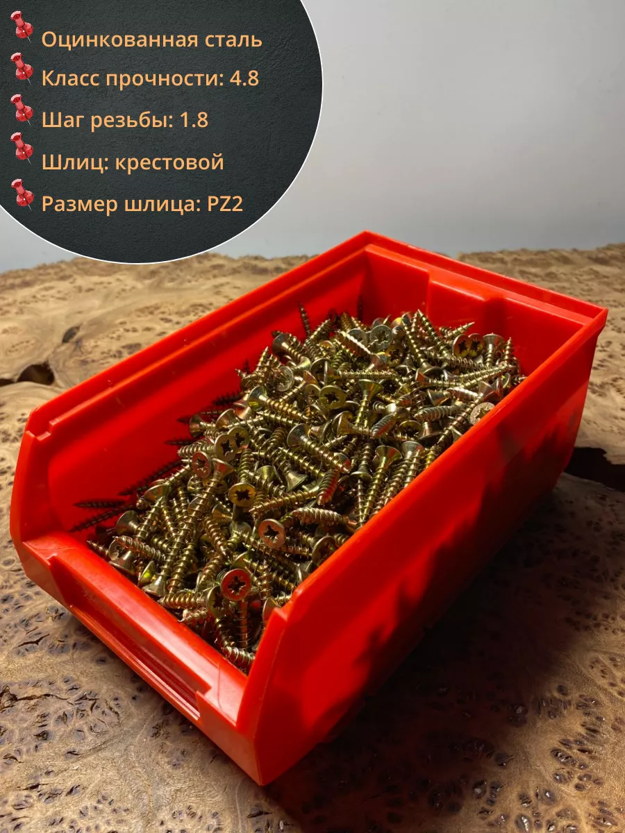 Шуруп потайной для дерева 4,5х20 ЖЦ, в контейнере, 1200 шт.