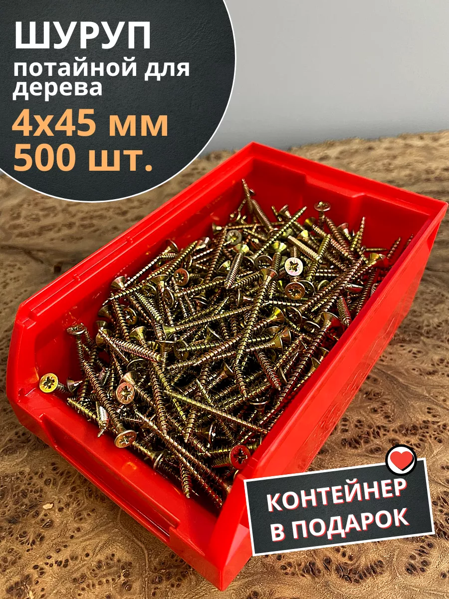 Шуруп потайной для дерева 4х45 ЖЦ, в контейнере, 500 шт.