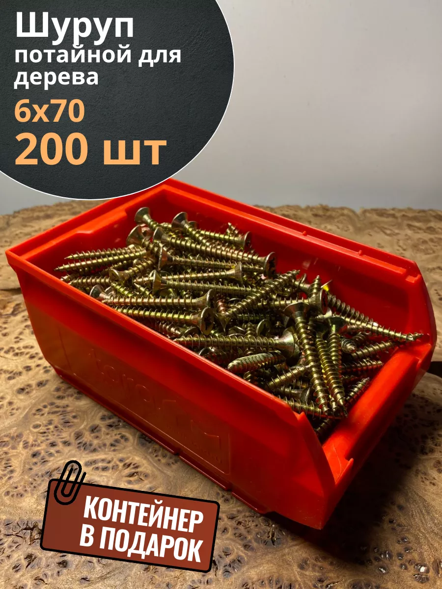 Шуруп потайной для дерева 6х70 ЖЦ, в контейнере, 200 шт.