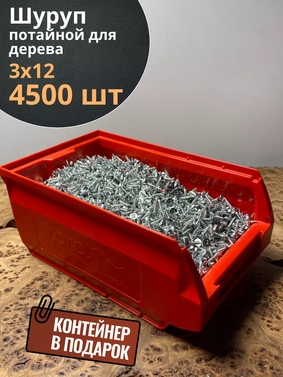 Шуруп потайной для дерева Б 3х12 БЦ,в контейнере, 4500 шт.