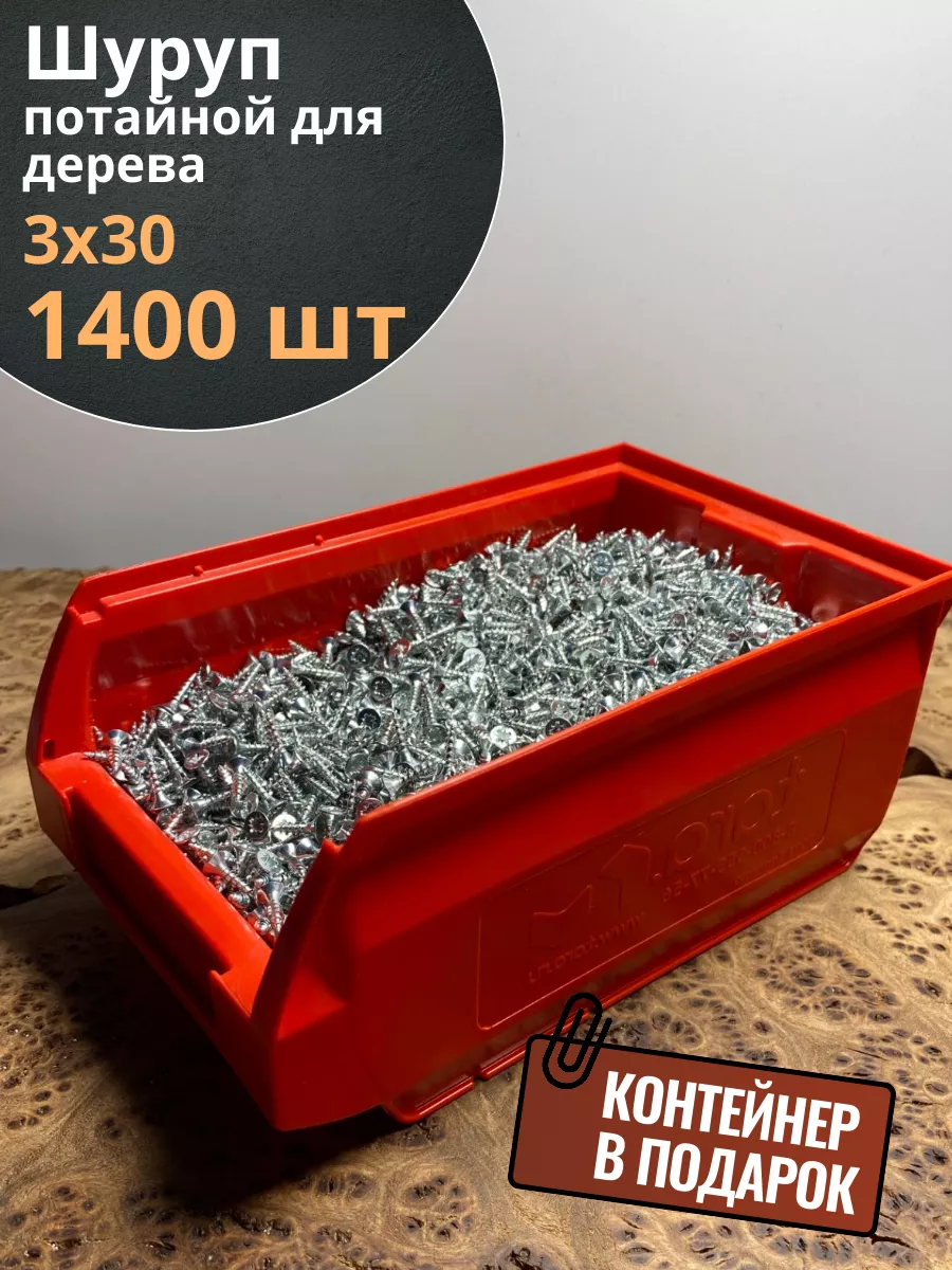 Шуруп потайной для дерева Б 3х30 БЦ,в контейнере, 1400 шт.