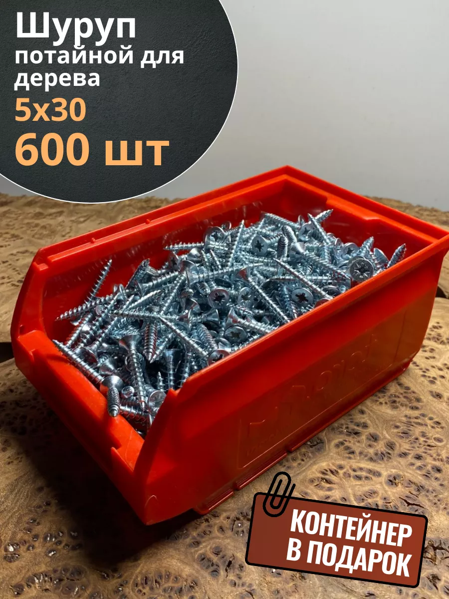 Шуруп потайной для дерева Б 5х30 БЦ,в контейнере, 600 шт.