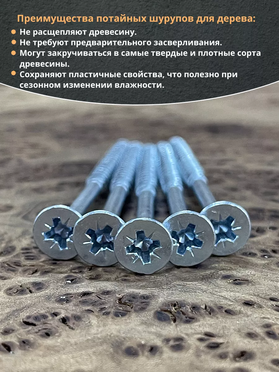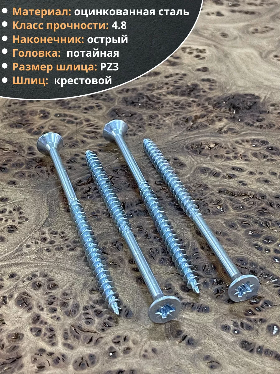 Шуруп потайной для дерева Б 6,0х100 БЦ, 50 шт.