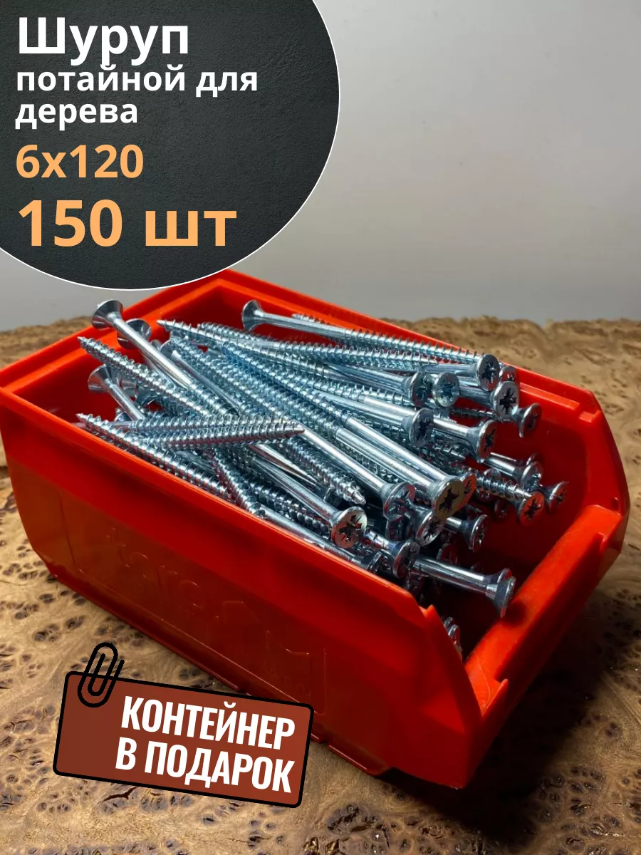 Шуруп потайной для дерева Б 6х120 БЦ,в контейнере, 150 шт.