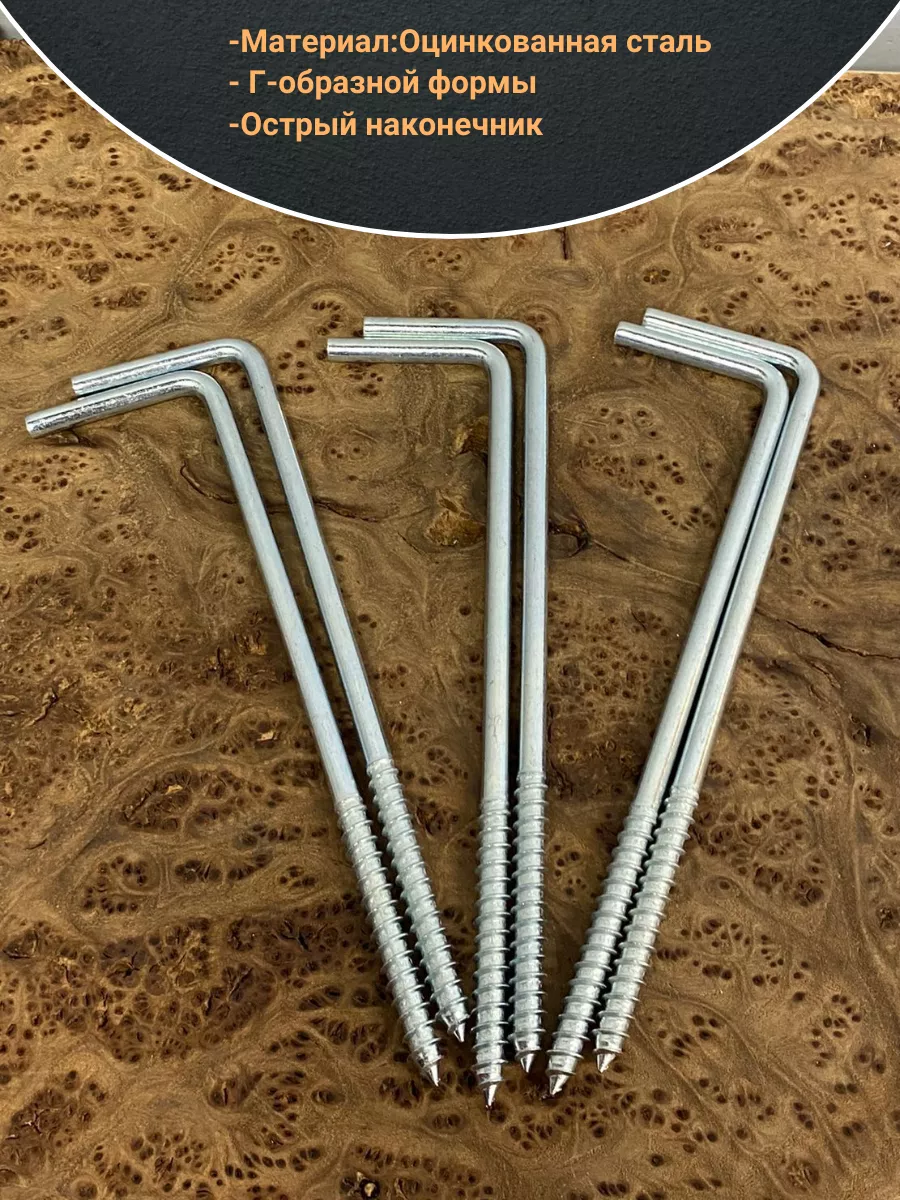 Шуруп-костыль - стальной шуруп в виде стержня Г-образной формы. Шуруп выполнен из качественной стали с оцинкованным покрытием, что обеспечивает устойчивость изделия к воздействию влаги. Применяется для крепления к деревянным поверхностям легких съемных конструкций, а так же может быть использован при крепеже к бетону, природному камню или кирпичу вместе с пластиковыми дюбелями. Шуруп-костыль в основном используют в производстве мебели, деревянном домостроении, при монтажных работах и в быту. Материал шурупа: сталь, Покрытие шурупа: оцинкованное, Головка: Г-образная.