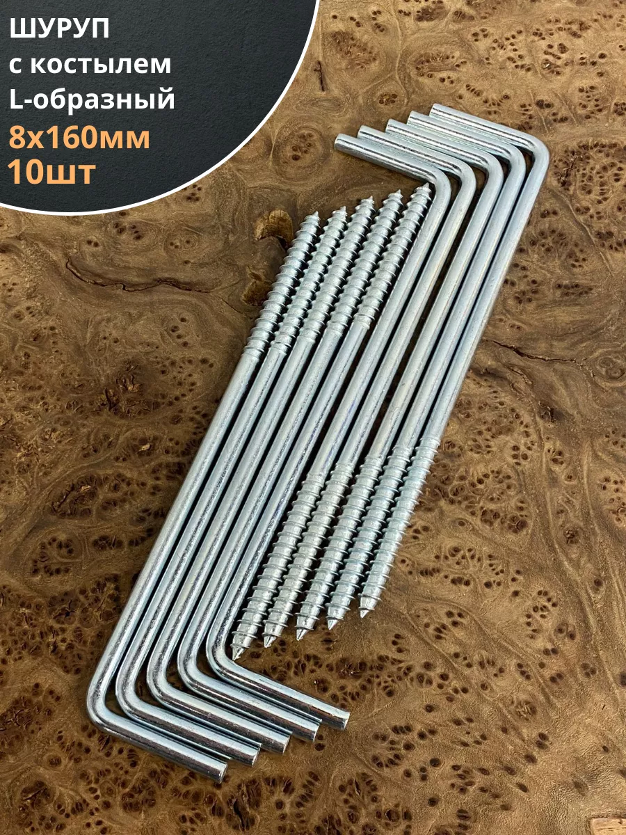 Шуруп с костылем L-образный 8х160, 10 шт.