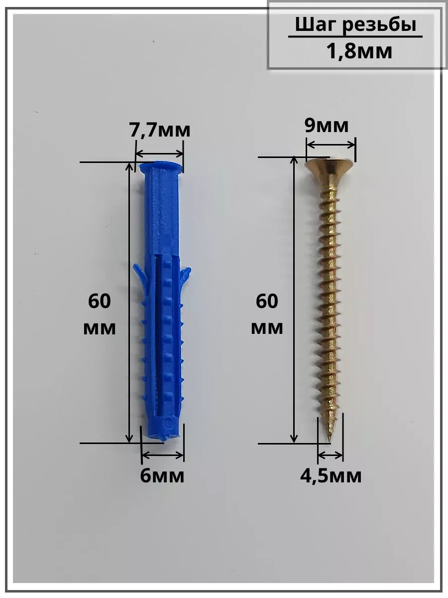 Шуруп саморез 4,5х60 мм ЖЦ с дюбелем 6х60, 10 шт.