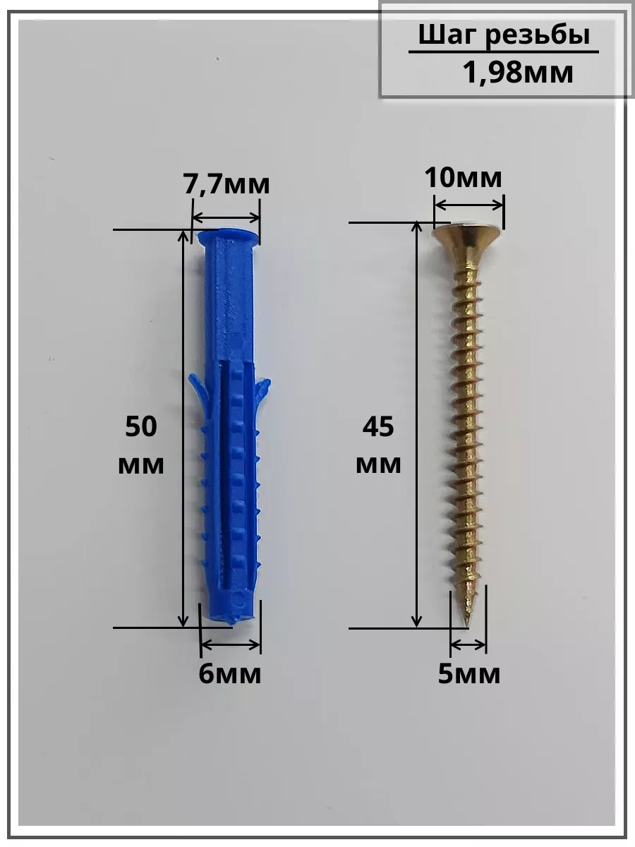 Шуруп саморез 5х45 мм ЖЦ с дюбелем 6х50, 50 шт.