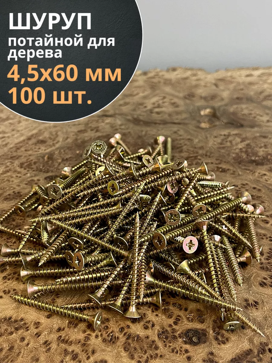 Шуруп саморез потайной для дерева 4,5х60 ЖЦ, 100 шт.