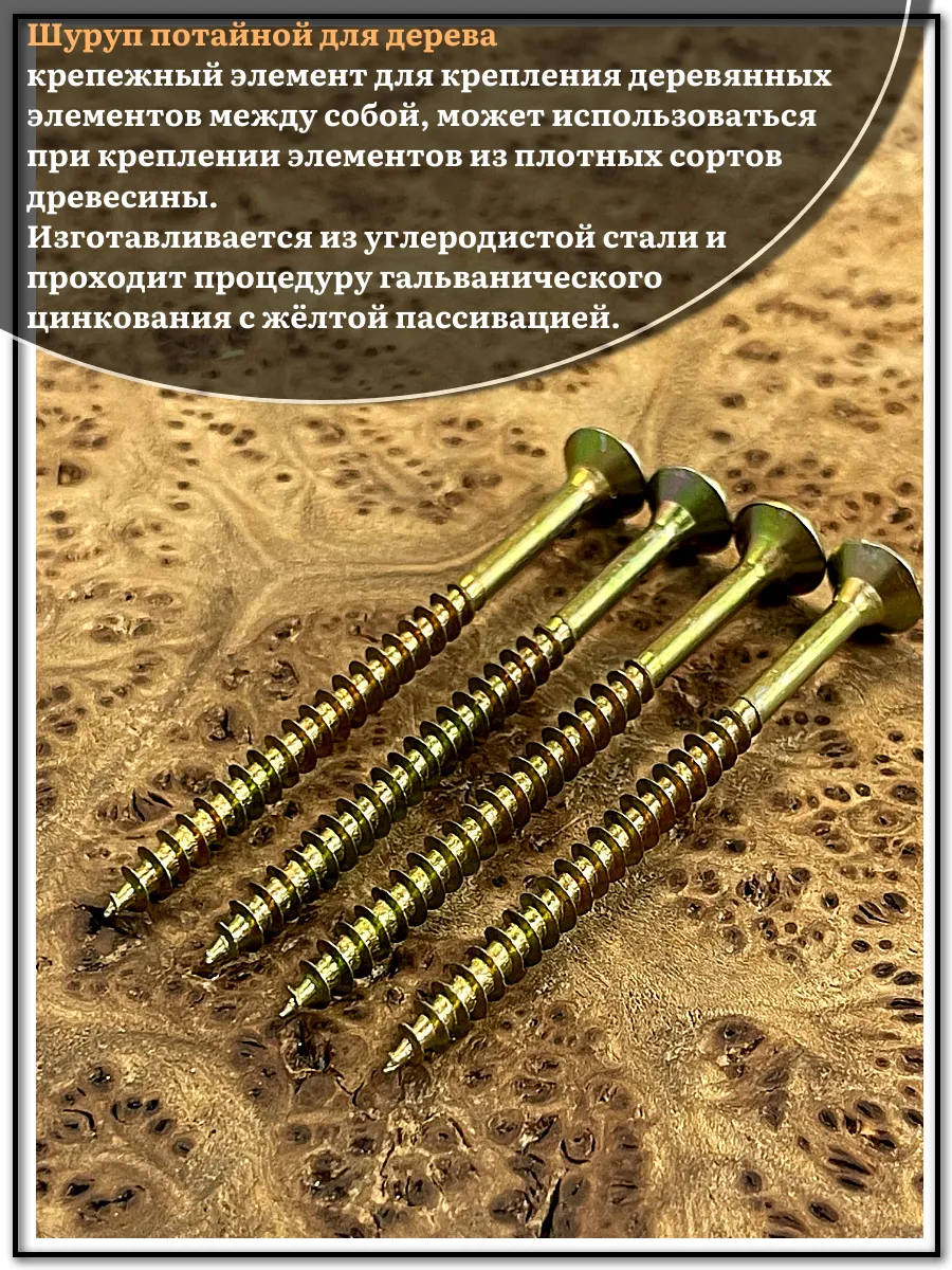| Шуруп саморез потайной для дерева 5х100 ЖЦ, 50 шт. | B04005010065007ф50 | 1 шт. |
