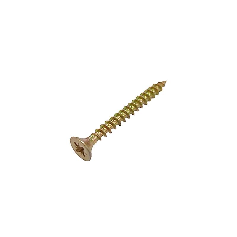 Шуруп саморез потайной для дерева 5х40 мм, желтый цинк, 100 шт. представляет собой стержень с головкой и острым наконечником. Универсальность проявляется в конструкции и области применения. Назначение шурупа — стягивать, скреплять между собой элементы: деревянных, древесностружечных и гипсокартонных плит, из тонкого листового металла. Он аккуратно и быстро вкручивается в материал без предварительного сверления, обеспечивая надежное соединение с основой. Крепежное изделие изготовлено из оцинкованной стали с дополнительной пассивацией. Саморез имеет желтый цвет. Его классическая конструкция включает заостренный цилиндрический стержень с винтовой нарезкой по всей длине, а также потайную головку с крестообразным шлицем PZ. Этот элемент служит для передачи крутящего момента от инструмента – отвертки, шуруповерта при закручивании или выкручивании крепежа.