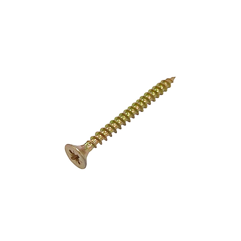 Шуруп саморез потайной для дерева 5х50 мм, желтый цинк, 1 кг. представляет собой стержень с головкой и острым наконечником. Универсальность проявляется в конструкции и области применения. Назначение шурупа — стягивать, скреплять между собой элементы: деревянных, древесностружечных и гипсокартонных плит, из тонкого листового металла. Он аккуратно и быстро вкручивается в материал без предварительного сверления, обеспечивая надежное соединение с основой. Крепежное изделие изготовлено из оцинкованной стали с дополнительной пассивацией. Саморез имеет желтый цвет. Его классическая конструкция включает заостренный цилиндрический стержень с винтовой нарезкой по всей длине, а также потайную головку с крестообразным шлицем PZ. Этот элемент служит для передачи крутящего момента от инструмента – отвертки, шуруповерта при закручивании или выкручивании крепежа.
