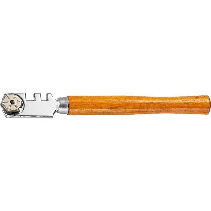 Эргономичная рукоятка стеклореза изготовлена из древесины и удобно лежит в руке, что повышает комфортность работы.