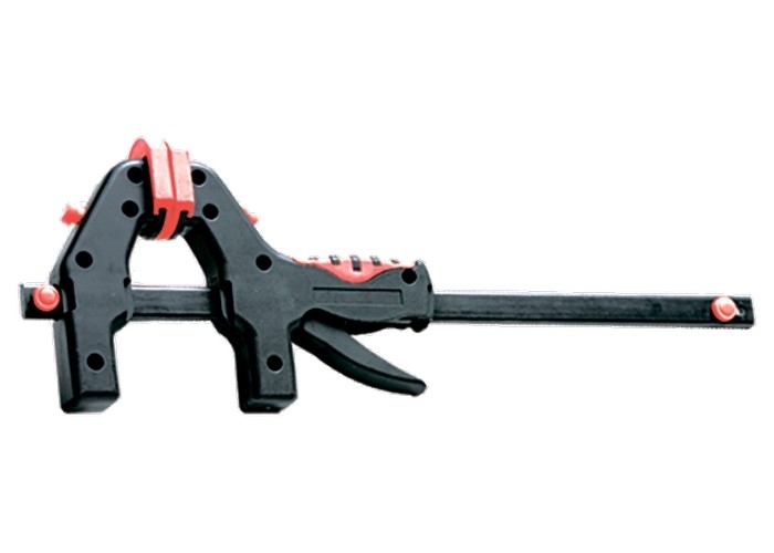 Универсальная F-образная быстрозажимная струбцина Matrix 20547, 760 х 1065 х 90 мм, в пластиковом корпусе, используется в столярном деле. Позволяет быстро фиксировать заготовки с целью их соединения или обработки — склеивания, сверления, шлифовки, пиления и других видов работ. Подвижная губка перемещается вдоль штанги при помощи пластинчатого механизма, а фиксатор препятствует разжиманию струбцины. Массивная конструкция обеспечивает надежность инструмента. Направляющая изготовлена из стали и устойчива к нагрузкам, поэтому выдерживает значительные усилия при сжатии предметов. Рабочие элементы выполнены из ударопрочного пластика и обладают высокой механической стойкостью, что увеличивает срок службы инструмента. Защитные накладки на губках предохраняют зажимаемые детали от повреждений. Опорную губку можно установить на противоположный конец штанги, после чего использовать струбцину на разжим.