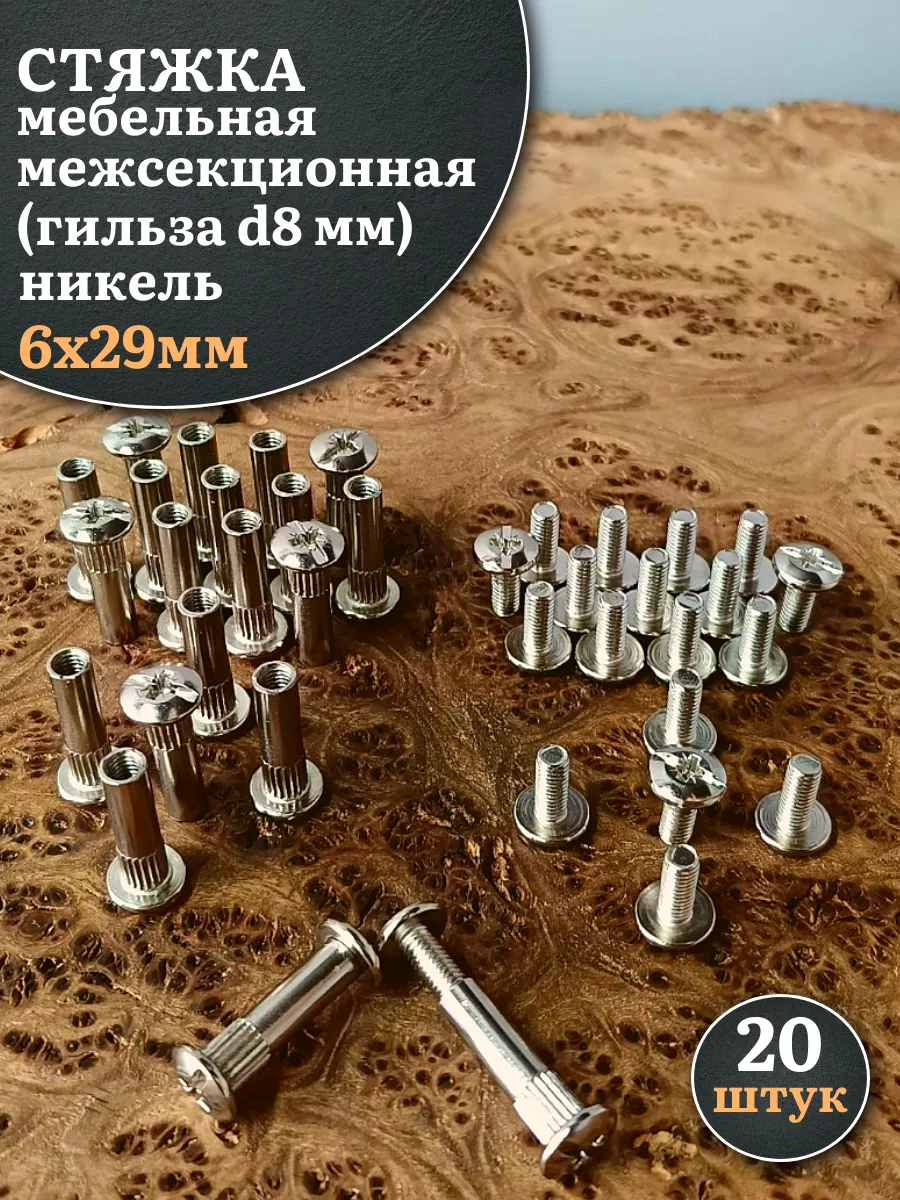 | Стяжка мебельная межсекционная 6х29 (гильза d8мм)никель 100шт | см615ф100 | 1 шт. |