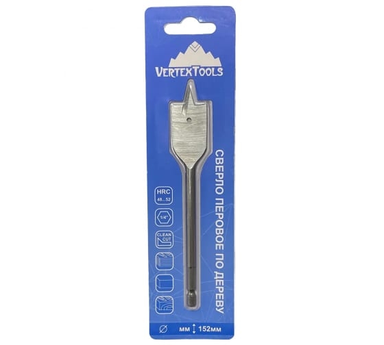 Сверло по дереву перовое Vertextools 1133-30 с шестигранным хвостовиком предназначено для дрелей, шуруповертов. Подходит для работы с древесиной, ДСП, МДФ, фанерой, гипсокартоном. Сверло изготовлено из инструментальной стали, закаленной в рабочей части. Оснащено очерчивающим остриём, что позволяет получить ровное, цельное отверстие. Шестигранный хвостовик обеспечивает надежное закрепление в патроне. Перовое сверло имеет высокий коэффициент производительности и позволяет выполнить отверстия различного диаметра. Для получения наилучшего результата и чтобы продлить период эксплуатации, соблюдайте правила: Начинайте сверлить на малых оборотах дрели постепенно добавляя, но не более 300-450 об/мин. Такой подход позволяет добиться более качественных результатов и сохраняет сверло от деформации. Устанавливайте сверло выдержав угол в 90.
