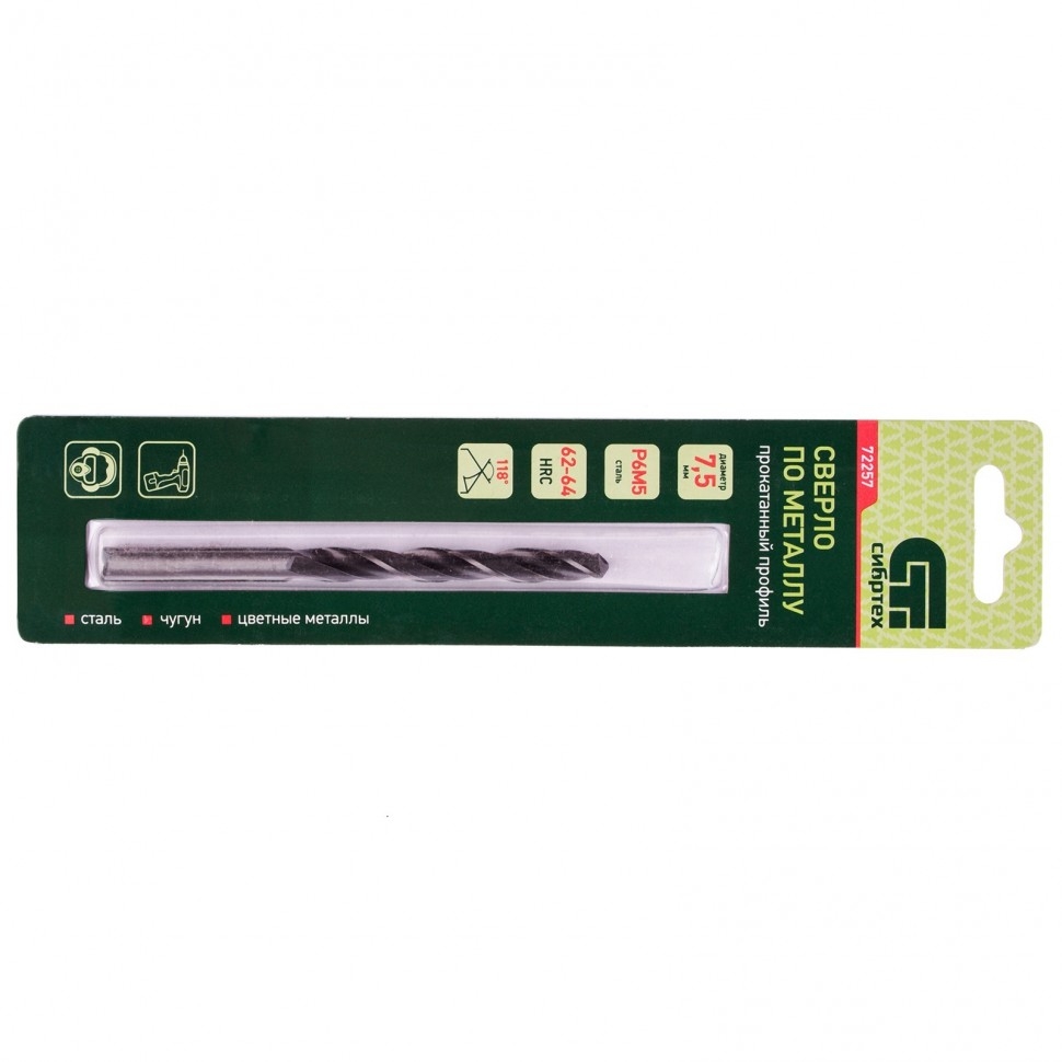 Сверло по металлу 7,5 мм Р6М5 Сибртех