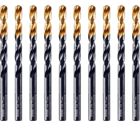 Сверло по металлу Denzel Golden Tip из стали HSS-TiN, 10 шт. в упаковке, используется для получения отверстий в стальных заготовках. Оснастка вышлифована на современном оборудовании и имеет класс точности A1, что позволяет получить отверстия высокого качества. Набор применяется во время слесарных работ. Прочность — сверла из быстрорежущей стали устойчивы к перегреву и выдерживают высокие нагрузки.