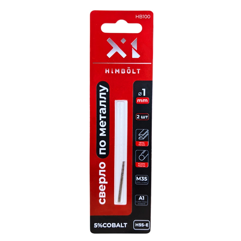 Сверло по металлу с кобальтом 5% P6M5K5 1,0 мм HIMBOLT 2 шт.блистер