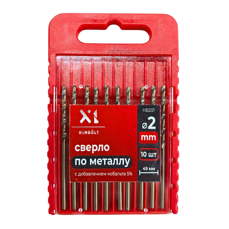 Сверло по металлу с кобальтом 5% P6M5K5 2,0 мм HIMBOLT 10 шт.пластиковый бокс