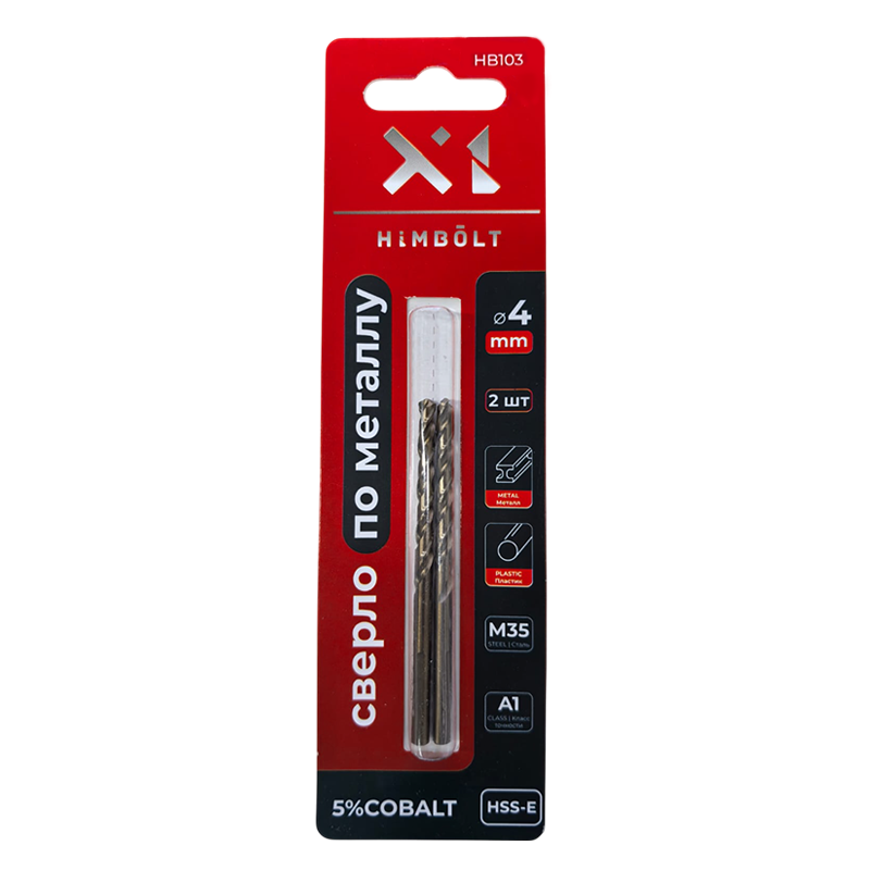 Сверло по металлу с кобальтом 5% P6M5K5 4,0 мм HIMBOLT 2 шт.блистер