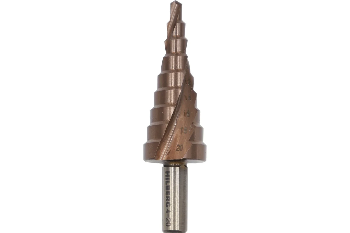 Сверло ступенчатое по металлу, HSS-COBALT, 9 ступеней, 4-20 мм P6M5 Hilberg
