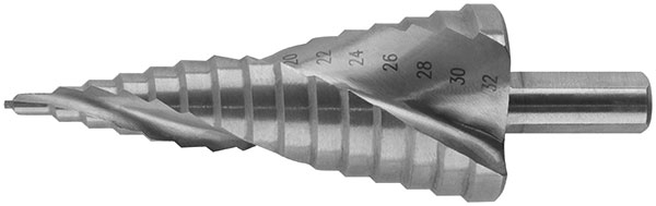 Сверло ступенчатое по металлу, HSS, спирал.проф.,10 ступеней, 9-36 мм