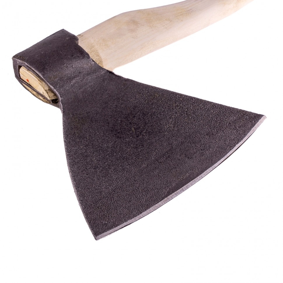 Кованый топор «Мясоруб» 21682 с рабочей частью весом 2460 г и топорищем 500 мм, вес в сборе 2870 г, используется для разделки тушек. Он пригодится в хозяйстве, на рынке, на кухне ресторана для подготовки мясной продукции к приготовлению или продаже. Голова топора выполнена из качественной стали 60Г и прошла закалку до необходимой твердости. Лезвие остро заточено на заводе, поэтому инструмент может использоваться сразу после приобретения. Полотно не сползает во время эксплуатации благодаря стальному клину, установленному в месте всада. Для предохранения от рассыхания деревянное топорище пропитано олифой. Мощный топор весом 2870 г с рукояткой 500 мм позволяет эффективно разрубать мясо и кости.