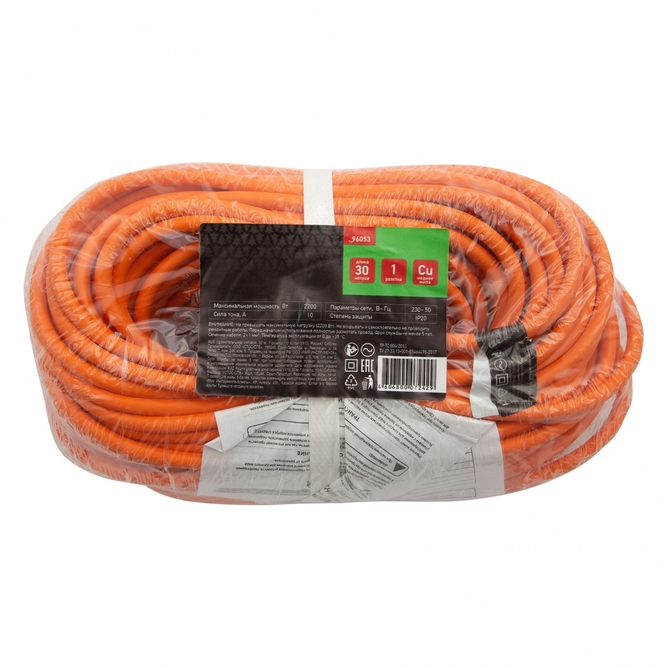 Удлинитель-шнур силовой, 30 м, 10А, 1 розетка, тип УХ10 Сибртех