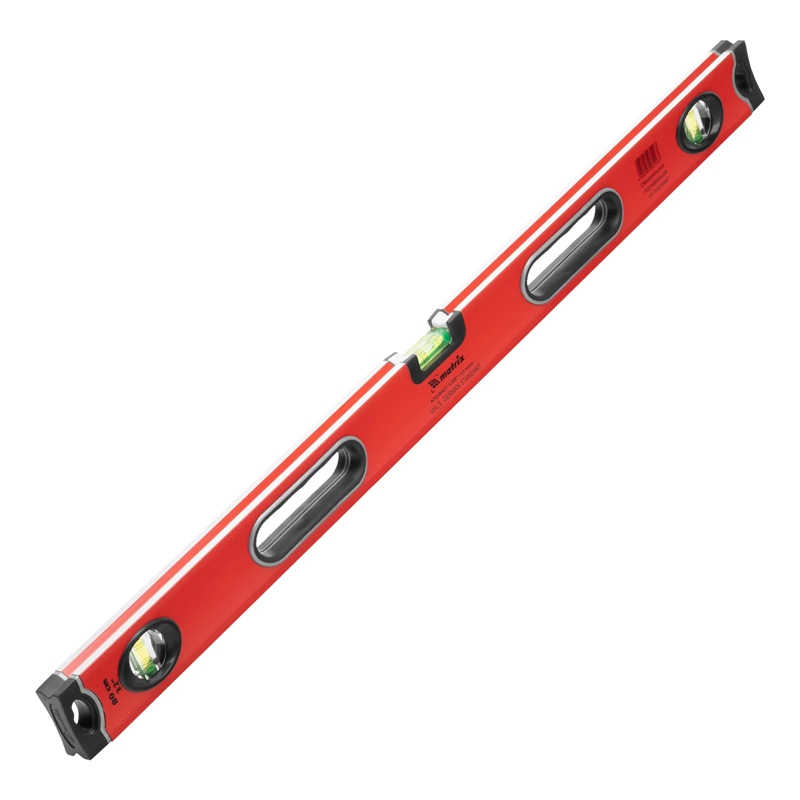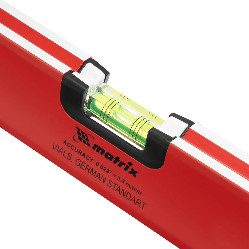 Уровень алюминиевый с ударопрочными заглушками 3 глазка 2-хкомп.рук. 800 мм Matrix
