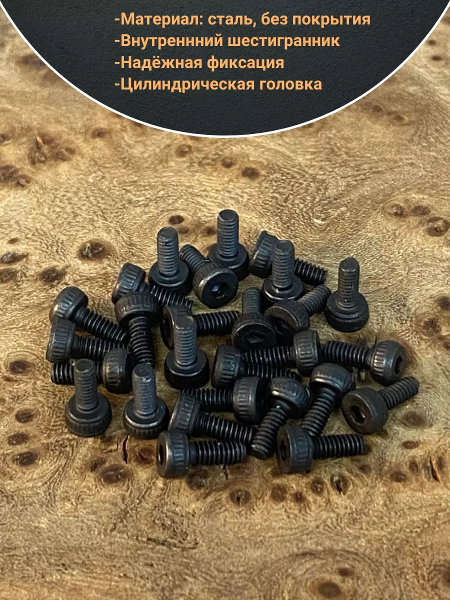Винт высокопрочный ПР М2х3 мм к.п.12.9 черный DIN912, 50 шт.