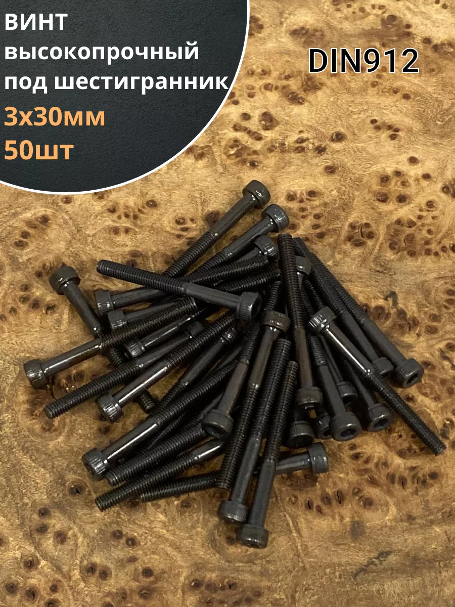 Винт высокопрочный НР М3х30 мм к.п.12.9 черный DIN912, 50 шт.