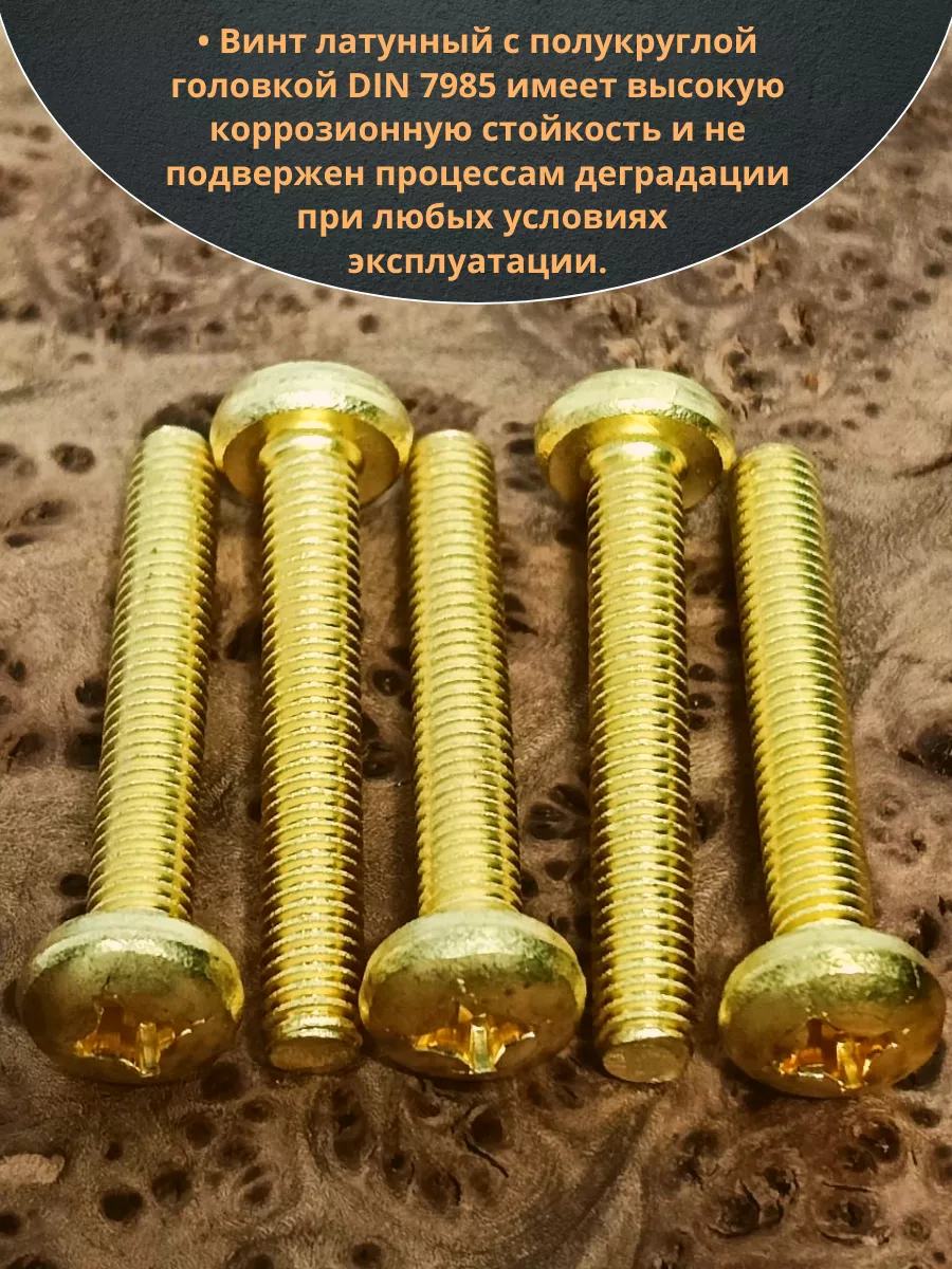 Винт 6х40 латунный с полукруглой гол. DIN7985,10 шт