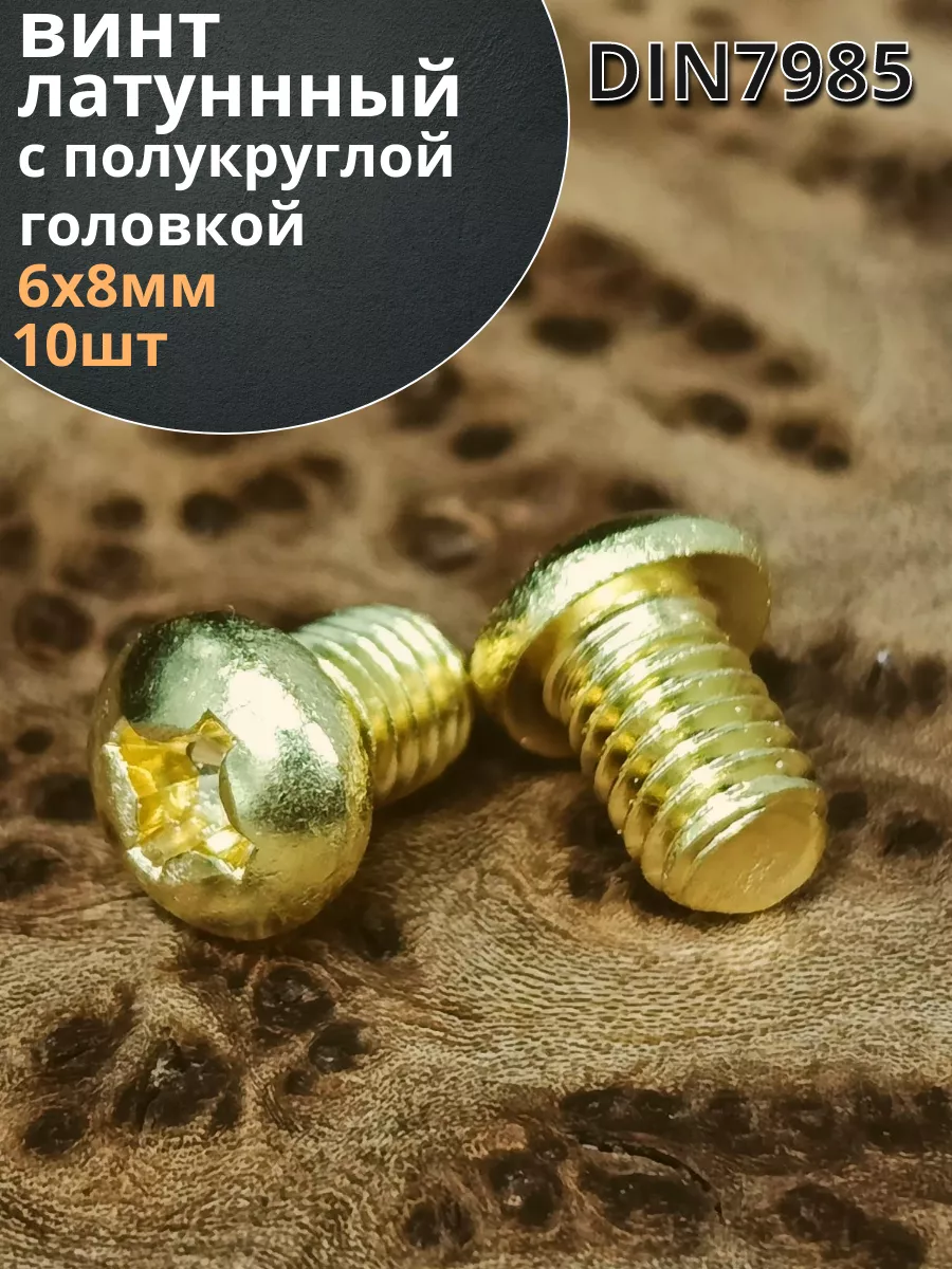 Винт 6х8 латунный с полукруглой гол. DIN7985,10 шт