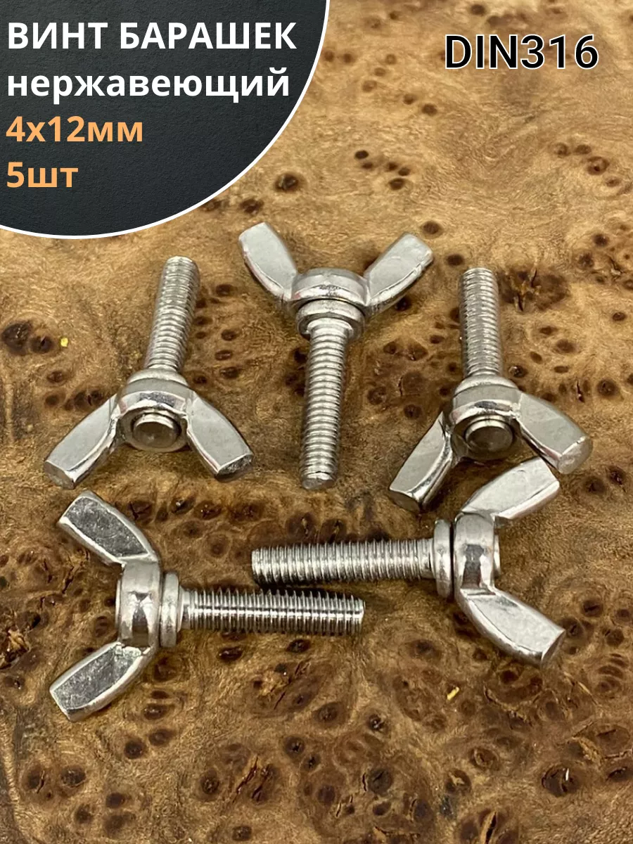 Винт-барашек М4х12 мм , нержавеющая сталь DIN 316 (5 шт.)