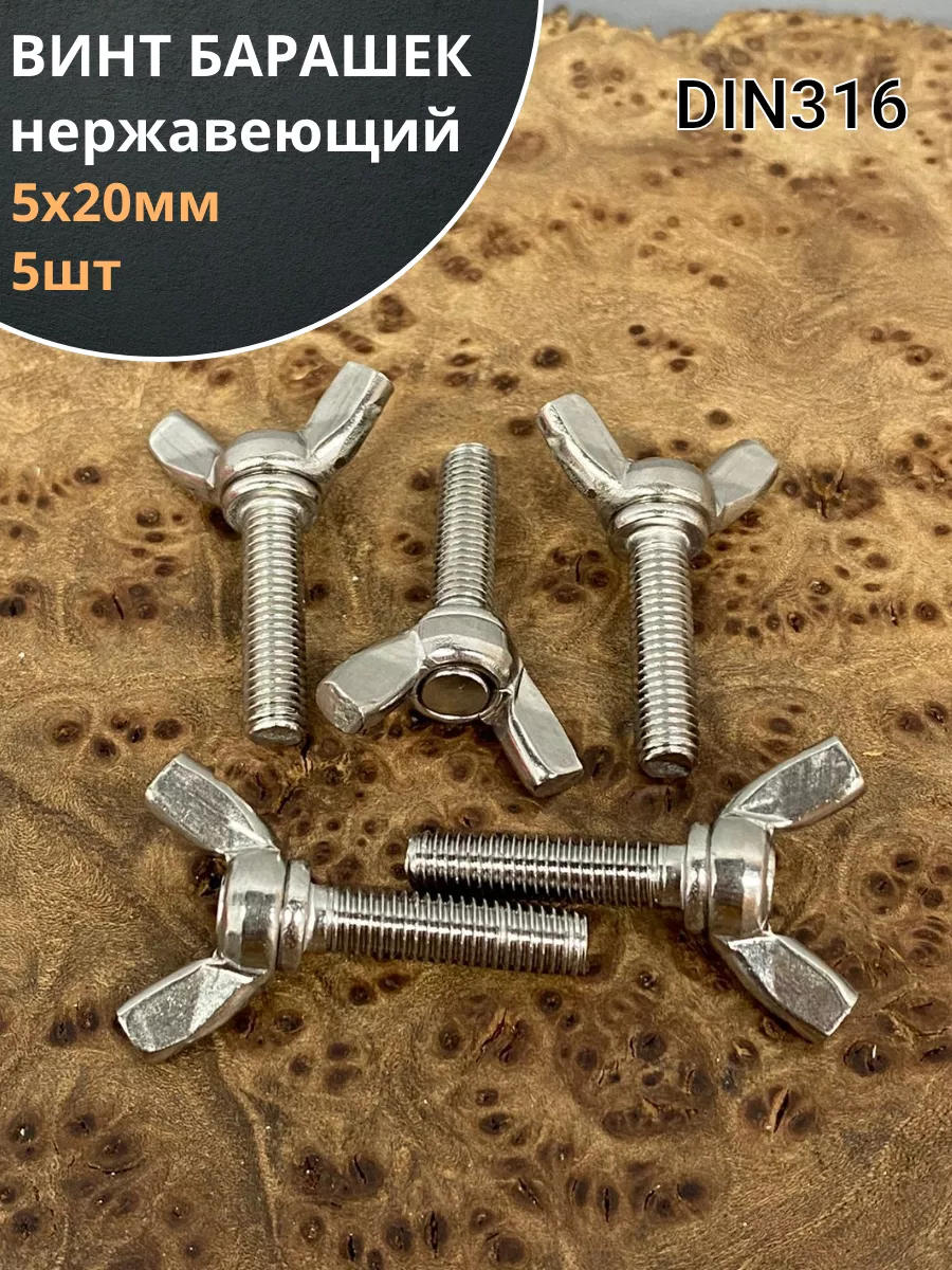 Винт-барашек М5х20 мм , нержавеющая сталь DIN 316 (5 шт.)