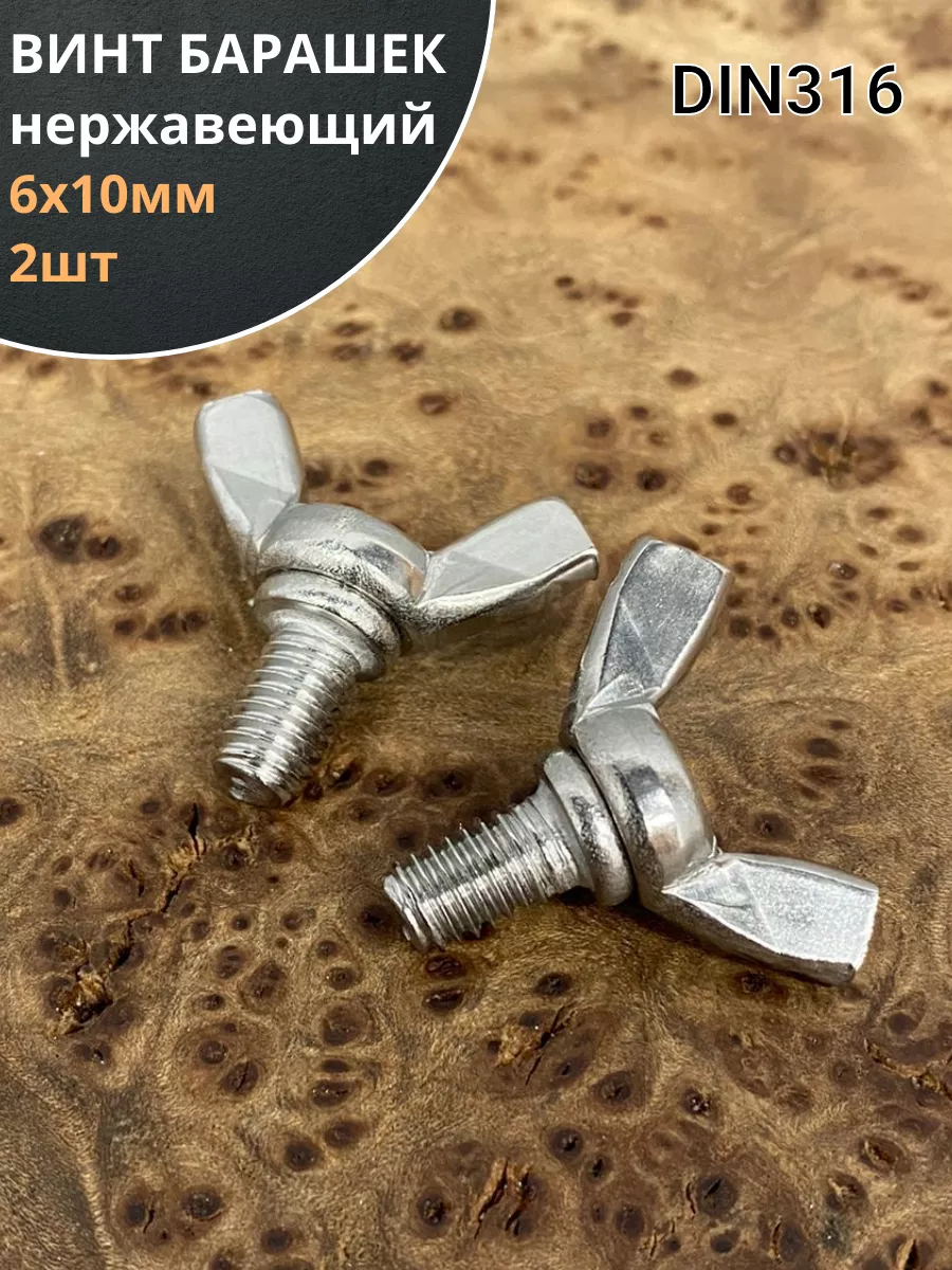 Винт-барашек М6х10 мм , нержавеющая сталь DIN 316 (2 шт.)