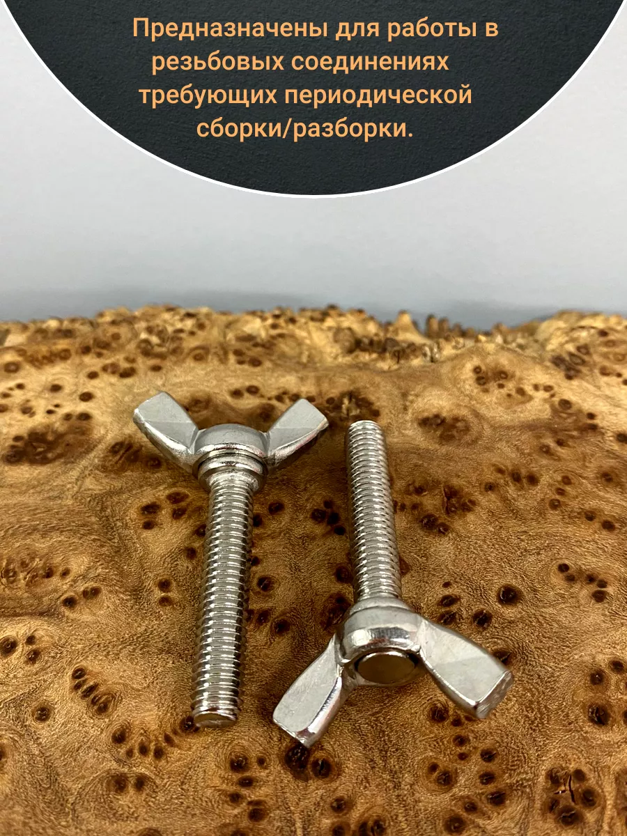 Барашковые винты DIN316 предназначены для работы в резьбовых соединениях требующих периодической сборки/разборки. Крепежные изделия удобны в эксплуатации и при монтаже, поскольку для их закручивания не требуется дополнительный инструмент. Затяжка винта производится усилием пальцев рук без использования ключа. Более того, для затяжки не рекомендуется использовать дополнительный инструмент, так как возможно повреждение лепестков Особенно актуально для процессов сбора мебели, а также для сборки изделий, нуждающихся в частом демонтаже.