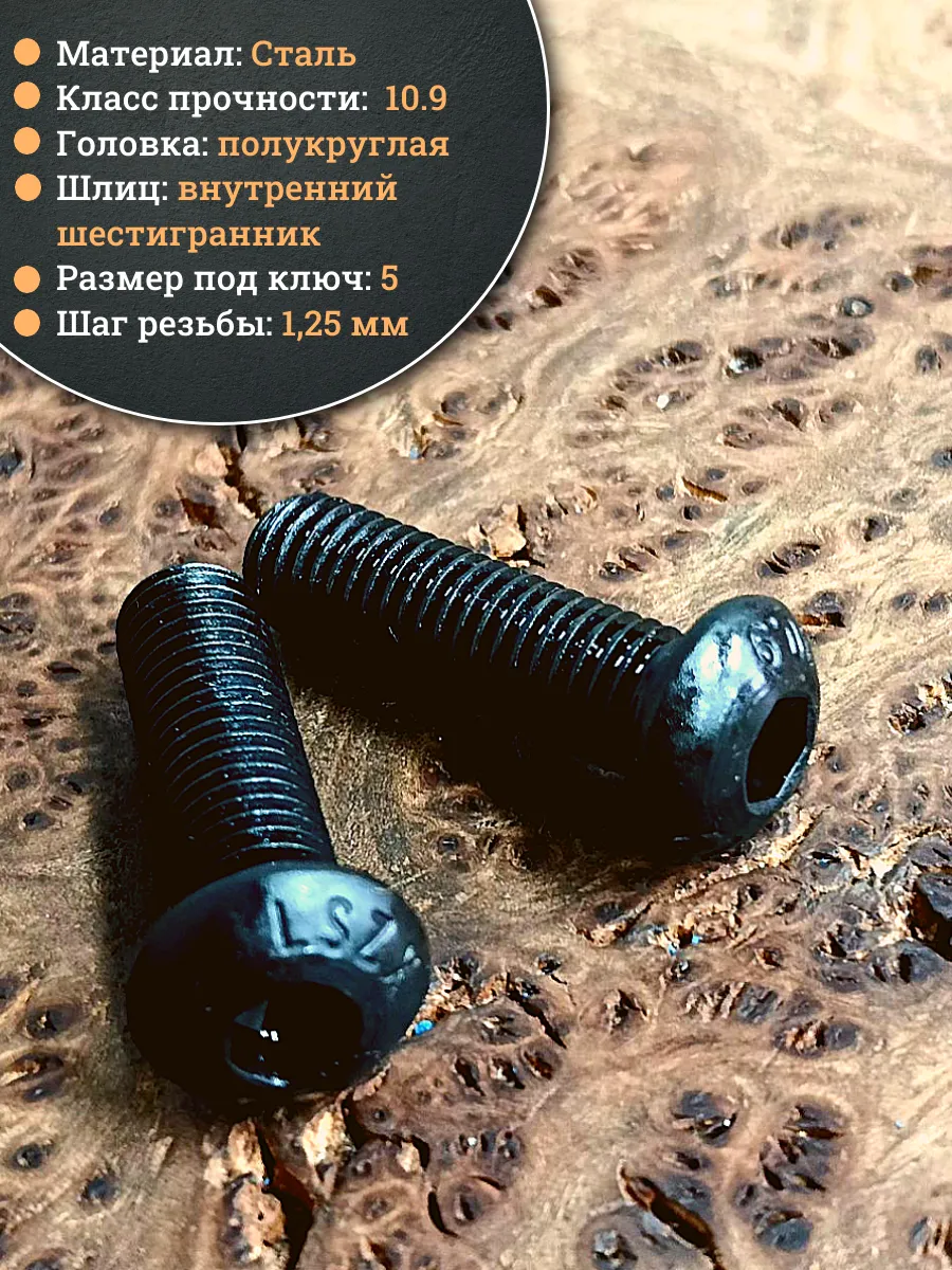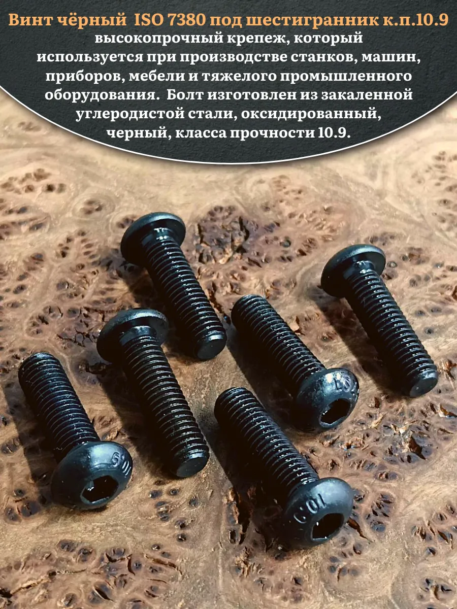 Винт чёрный М8х25 ISO 7380 под шестигранник к.п.10.9, 10 шт.
