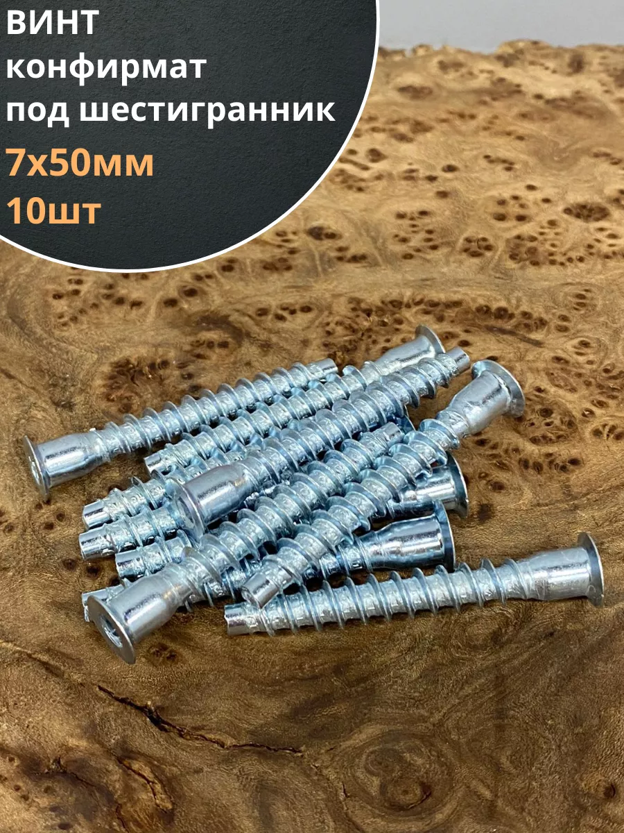 Винт-конфирмат 7х50 мм под шестигранник, 10 шт.