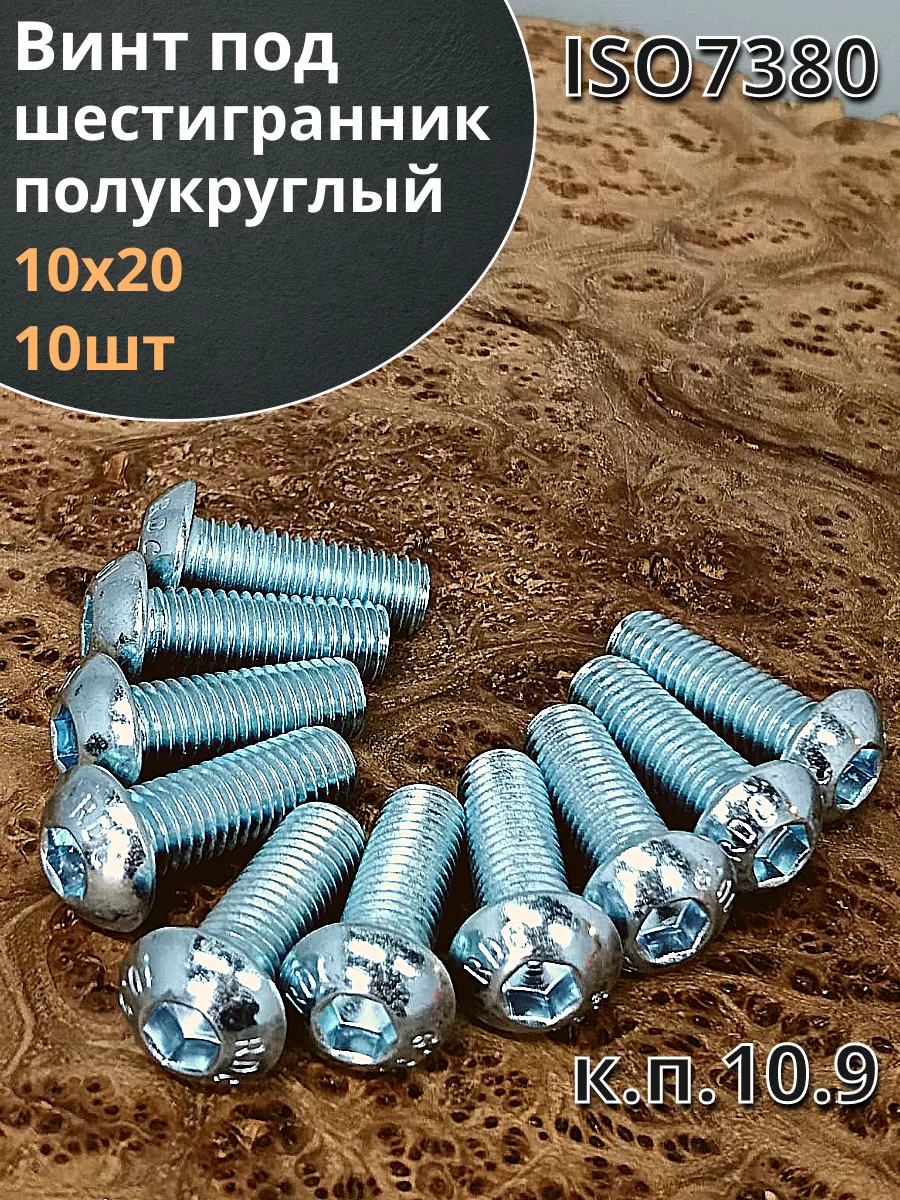 Винт М10х20 с внутренним шестигранником ОЦ 7380к.п.10.9,10шт