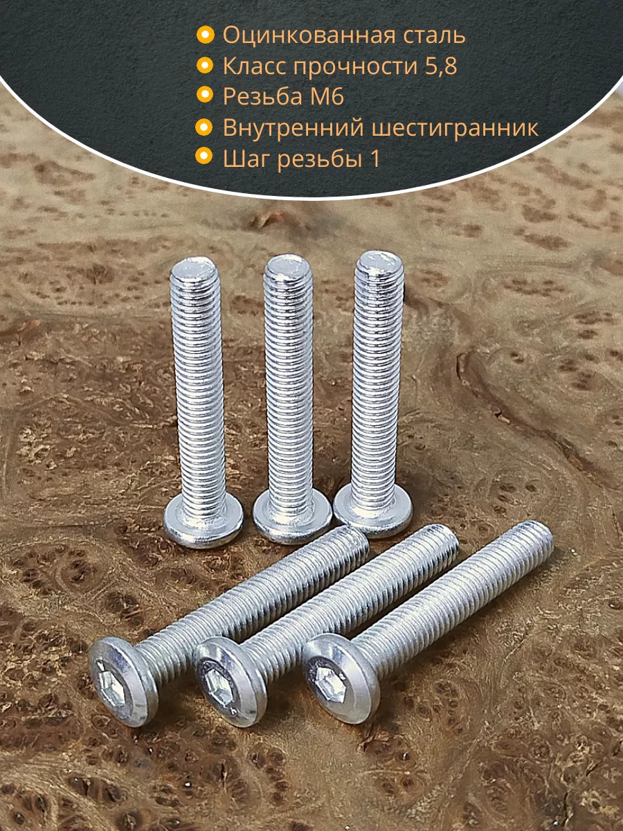 Винт мебельный 6х45 плоский под шестигранник DIN7420,20 шт