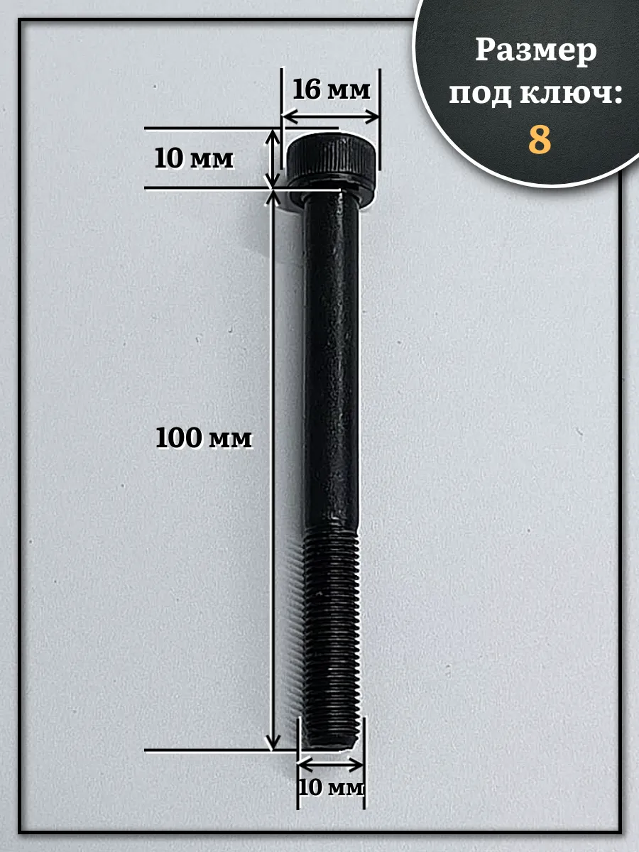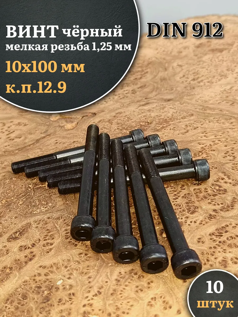 Винт мелкая резьба чёрный к.п.12.9 10х100х1,25 DIN912, 10 шт.
